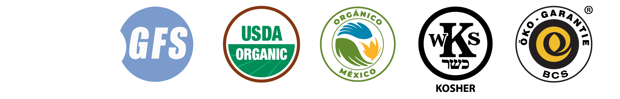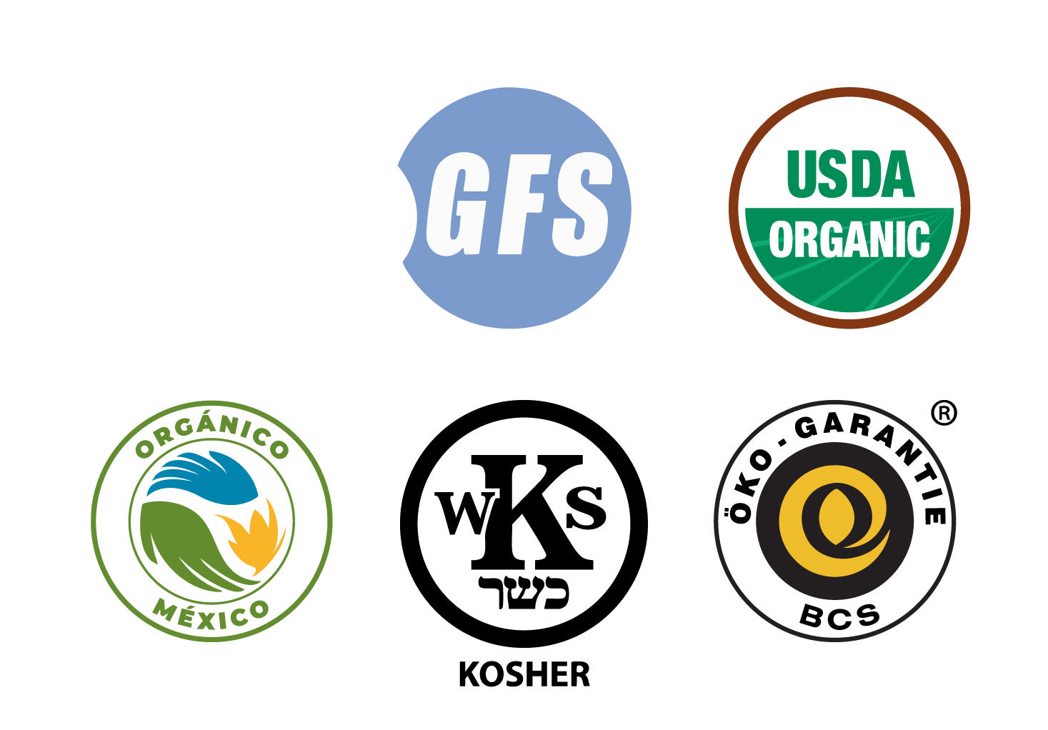 Certificación internacional que avala la seguridad y calidad de nuestros procesos, desde el cultivo hasta la manufactura. Garantiza que seguimos las mejores prácticas agrícolas y de higiene en toda la cadena.